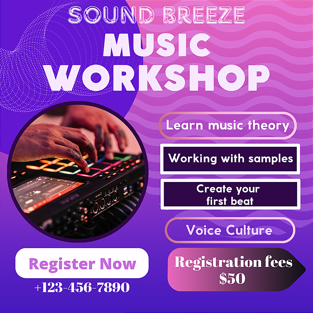 “Discover your musical potential at our exclusive Music Workshop with SOUND BREEZE”🔊